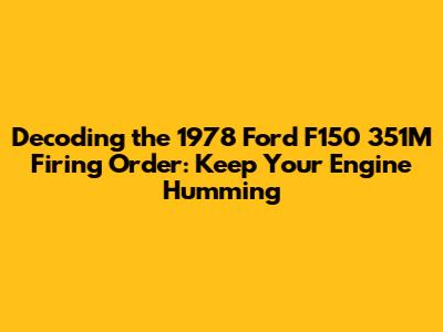 Hey guys! So, you've got yourself a classic 1978 Ford F150 with that beefy 351M engine, huh? Awesome choice! These trucks are legendary, and keeping them running smoothly is key. One of the most crucial pieces of the puzzle when it comes to engine performance and preventing those annoying misfires is understanding the 1978 Ford F150 351M firing order. It might sound a bit technical, but trust me, it's not rocket science, and getting it right will save you a ton of headaches. We're going to dive deep into what the firing order is, why it's so important, and how to make sure yours is set up correctly.