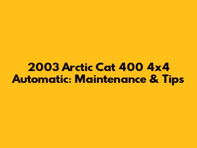 2003 Arctic Cat 400 4x4 Automatic: Maintenance & Tips