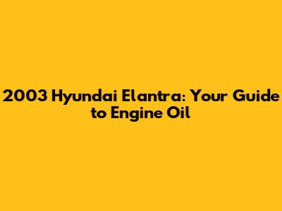 2003 Hyundai Elantra: Your Guide To Engine Oil