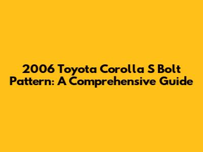 2006 Toyota Corolla S Bolt Pattern: What You Need To Know