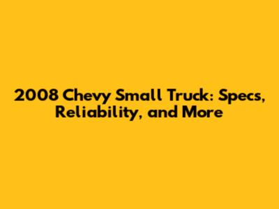 2008 Chevy Small Truck: Specs, Reliability, And More