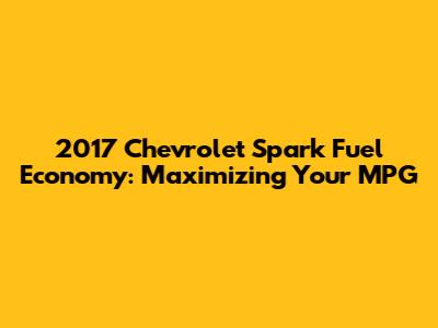 In conclusion, the 2017 Chevrolet Spark fuel economy stands out as a major selling point for this compact car. With its impressive MPG ratings and practical design, it's an excellent choice for anyone looking to save money on fuel costs without sacrificing comfort and convenience. By understanding the factors that affect fuel economy and implementing fuel-efficient driving techniques, you can maximize your Spark's MPG and enjoy even greater savings. Whether you're a city dweller, a student, or simply someone who wants to minimize their carbon footprint, the 2017 Chevy Spark offers a compelling combination of fuel efficiency, affordability, and practicality. So, if you're in the market for a fuel-efficient car, be sure to give the 2017 Spark a closer look. You might just be surprised at how much you can save at the pump!