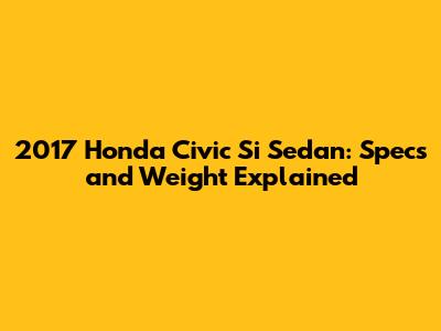 2017 Honda Civic Si Sedan: Specs And Weight Explained