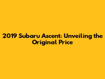 2019 Subaru Ascent: Unveiling The Original Price