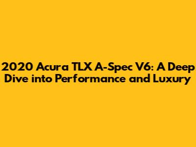 Alright, let's talk about what makes the 2020 Acura TLX A-Spec V6 such a compelling option. The heart of this beast is a powerful V6 engine, delivering a thrilling driving experience. This engine is more than just raw power; it's a testament to Acura's commitment to performance and precision engineering.