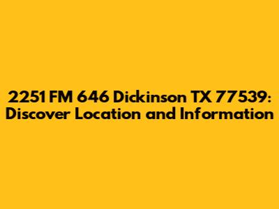 Hey guys! Today, we're diving deep into everything you need to know about 2251 FM 646, Dickinson, TX 77539. Whether you're planning a visit, researching a business, or just curious about this location, this is your ultimate guide. We'll explore its geographical significance, local amenities, nearby attractions, and any other relevant details to give you a comprehensive understanding. So, let's get started and uncover all the interesting aspects of this address!
