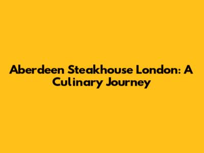 Aberdeen Steakhouse London: A Feast For Steak Lovers