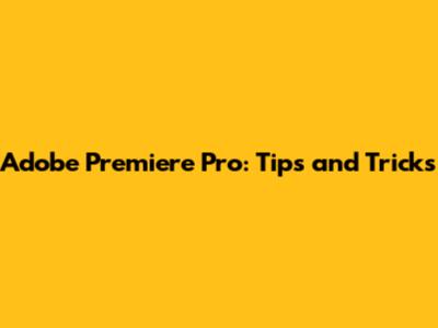Adobe Premiere Pro: Tips And Tricks