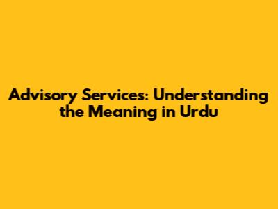 Advisory Services in Urdu: A Detailed Explanation