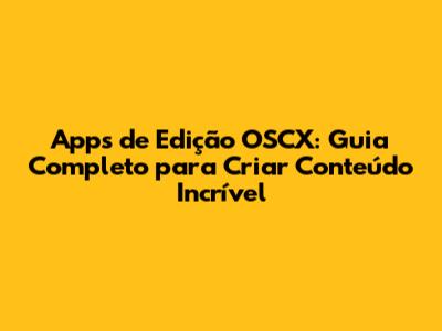 Apps De Edição OSCX: Guia Completo Para Criar Conteúdo Incrível