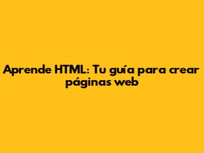 Aprende HTML: Tu Guía Para Crear Páginas Web