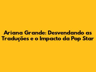 Ah, Ariana Grande! A sensação pop que conquistou o mundo com sua voz inconfundível e estilo único. Mas, vocês já pararam para pensar além das batidas e melodias? Neste artigo, vamos mergulhar no universo de Ariana, explorando as traduções de suas músicas, o significado por trás das letras e o impacto cultural que ela causou. Preparem-se para uma viagem que vai além dos hits, porque vamos desvendar os segredos da nossa querida Ari!