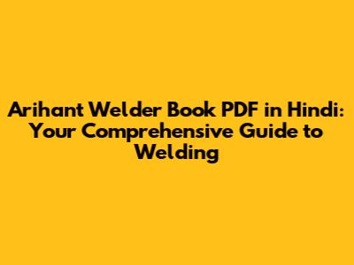 Where to Find the Arihant Welder Book PDF