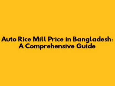 Factors Influencing Auto Rice Mill Price in Bangladesh
