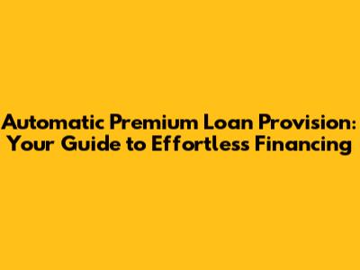 Automatic Premium Loan Provision: Your Guide To Effortless Financing