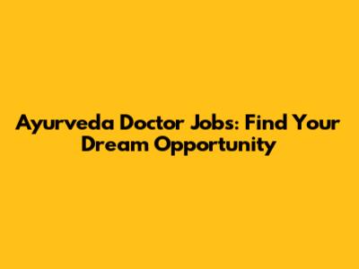 Ayurveda Doctor Jobs: Find Your Dream Opportunity
