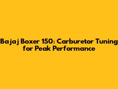 Bajaj Boxer 150: Carburetor Tuning For Peak Performance