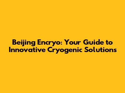 Beijing Encryo: Your Guide To Innovative Cryogenic Solutions