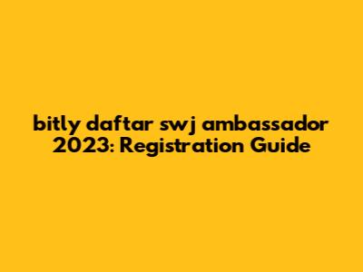 Bitly Daftar Swj Ambassador 2023: Registration Guide