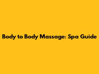 Body To Body Massage: Spa Guide