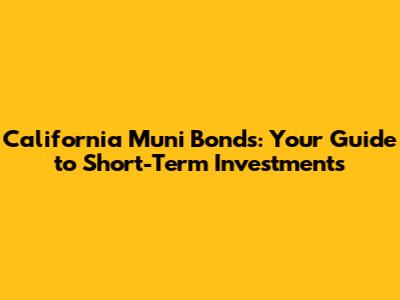 California Muni Bonds: Your Guide To Short-Term Investments