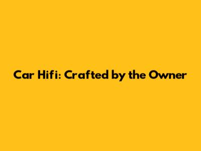 Car Hifi: Crafted By The Owner
