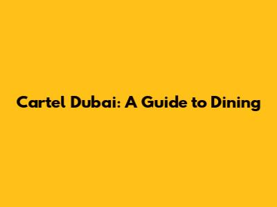 Cartel Dubai: A Guide To Dining