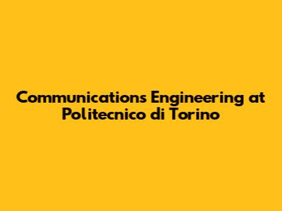 Communications Engineering At Politecnico Di Torino