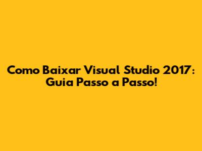 Como Baixar Visual Studio 2017: Guia Passo A Passo!