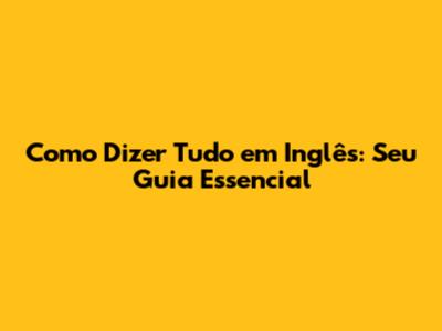 Como Dizer Tudo Em Inglês: Seu Guia Essencial