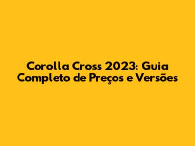 Descubra tudo sobre o Corolla Cross 2023! Se você está considerando comprar um SUV que combina confiabilidade, design moderno e tecnologia, este guia é para você. Vamos mergulhar nos preços, versões, características e tudo mais que você precisa saber sobre o Corolla Cross 2023. Prepare-se para uma análise completa que vai te ajudar a tomar a melhor decisão! Este artigo, criado com carinho para você, vai te guiar por todos os detalhes que importam na hora de escolher seu novo carro.