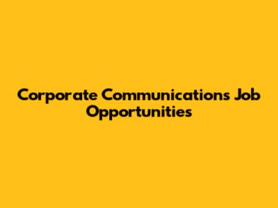 Corporate Communications Job Opportunities