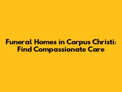 avigating the loss of a loved one is undoubtedly one of life's most challenging experiences. during such a difficult time, finding a funeral home that provides compassionate care and understands your needs becomes paramount. if you're in corpus christi, texas, you'll want to know where to turn for support. this article serves as a comprehensive guide to funeral homes in corpus christi, offering insights into selecting the right provider, understanding the services they offer, and ensuring you honor your loved one's memory with dignity and respect.