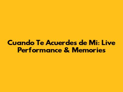 Cuando Te Acuerdes De Mi: Live Performance & Memories