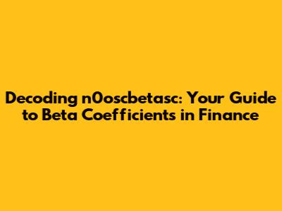Decoding N0oscbetasc: Your Guide To Beta Coefficients In Finance