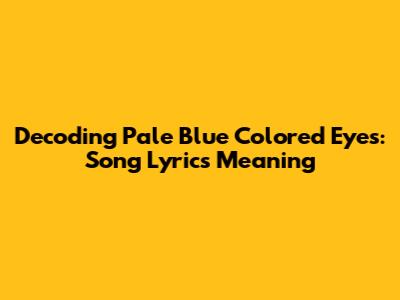 Decoding 'Pale Blue Colored Eyes': Song Lyrics Meaning
