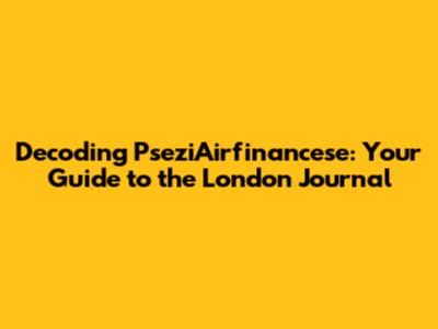 Hey guys! Ever stumbled upon something new and thought, "Woah, what's that about?" Well, that's exactly how I felt when I first came across pseziAirfinancese Journal London. It sounds like a mouthful, right? But trust me, once you break it down, it's super interesting, especially if you're keen on finance, the UK, or just staying in the know. So, what is this thing? And why should you care? Let's dive in and explore the fascinating world of pseziAirfinancese, particularly its London-based journal.