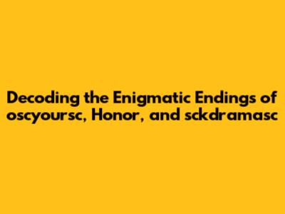 Decoding The Ending: Oscyoursc, Honor, And Sckdramasc