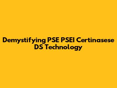 Demystifying PSE PSEI Certinasese DS Technology