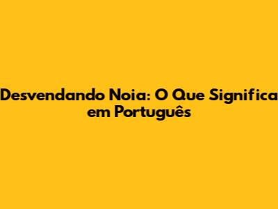 Desvendando 'Noia': O Que Significa Em Português
