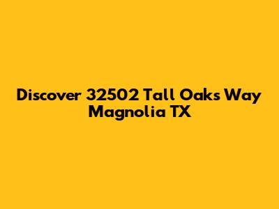 Hey guys! Let's talk about a property that's seriously catching our eye: 32502 Tall Oaks Way in Magnolia, Texas. This isn't just any address; it's a prime spot in a community known for its friendly vibe and beautiful surroundings. If you're on the hunt for a new home or just curious about what Magnolia has to offer, you've landed in the right place. We're diving deep into what makes this specific location, 32502 Tall Oaks Way, a gem worth exploring. From its physical attributes to the lifestyle it promises, we'll break down why this Magnolia, TX property stands out. Get ready to discover the charm, convenience, and potential that await at this sought-after address.