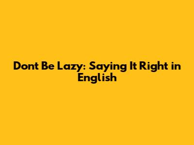 Don't Be Lazy: Saying It Right In English