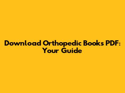 Download Orthopedic Books PDF: Your Guide