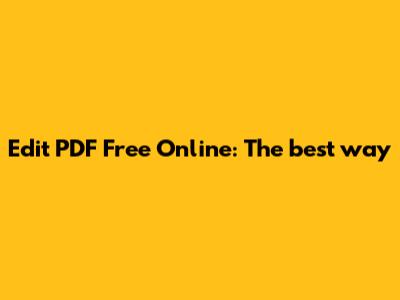 Edit PDF Free Online: The Best Way