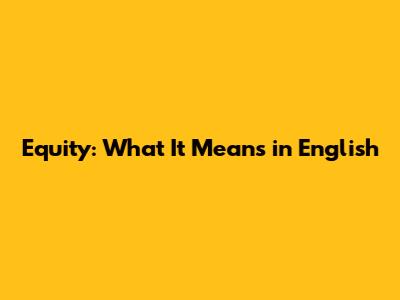 Equity: What It Means In English