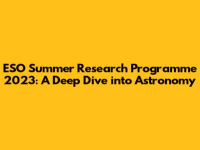 Hey everyone, are you ready to blast off on an amazing adventure? If you're passionate about astronomy and looking for an incredible opportunity, then you absolutely need to know about the ESO Summer Research Programme 2023! This program is a stellar chance for university students like yourselves to gain real-world experience in the fascinating world of astrophysics. It's not just about hitting the books; it's about getting hands-on with cutting-edge research, working alongside top scientists, and making memories that will last a lifetime. So, buckle up, because we're about to explore everything you need to know about this fantastic program!