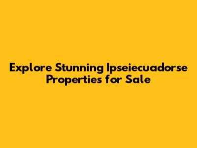 Explore Stunning Ipseiecuadorse Properties For Sale