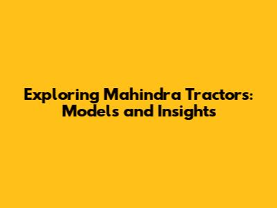 Exploring Mahindra Tractors: Models And Insights