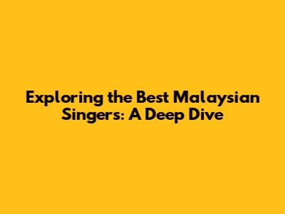 Exploring The Best Malaysian Singers: A Deep Dive