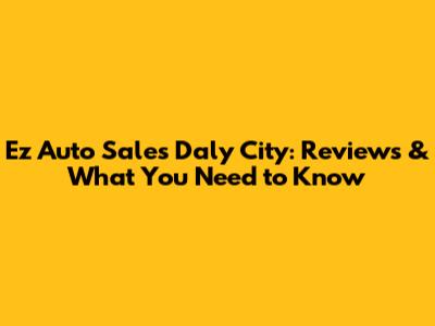 Ez Auto Sales Daly City: Reviews & What You Need To Know